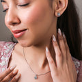 This stunning pendant set showcases a classic halo design with a large, sparkling cubic zirconia centerpiece surrounded by a halo of smaller stones. The set includes matching earrings and a pendant, perfect for adding a touch of elegance and brilliance to any outfit. Ideal for both everyday wear and special occasions.