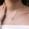 This charming pendant set features a heart-shaped design with a unique grid pattern, embellished with cubic zirconia stones. The set includes matching earrings and a pendant, perfect for adding a subtle sparkle to your everyday look or a romantic touch for special occasions.
