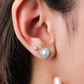 Enhance your style with our 92.5 Premium Sterling Silver Pearl Glimmer Earrings. Featuring a luminous pearl surrounded by a delicate halo of sparkling stones, these hypoallergenic earrings add timeless elegance to any outfit. Perfect for both everyday wear and special occasions.