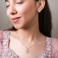 This pendant set features a heart-shaped design adorned with a sparkling cubic zirconia stone, crowned with an elegant motif symbolizing royalty. The set includes a matching pendant and earrings, perfect for adding a regal touch to any outfit. A beautiful choice for expressing love and elegance.